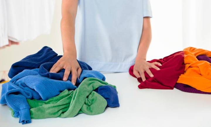 Al apilar prendas de color húmedas, estas tienden a desteñirse entre sí. Sácalas de la lavadora en cuanto finalice el programa. A la hora de secar es mejor separar por tipo de tejido en lugar de por color. El motivo es que los distintos materiales textiles tienen tiempos de secado diferentes, y posiblemente expondrías algunos de ellos a una acción mecánica innecesaria, lo que desgasta el exterior de la prenda y hace que adquiera un aspecto desgastado y descolorido.