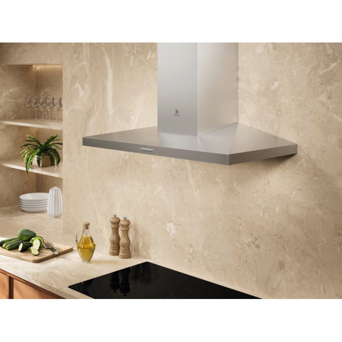 Campana extractora decorativa Serie 500 ExtractionTech de 90 cm, nivel de ruido de 52 - 69 dB(A), 3 velocidades, hasta 600 m³/h, Control a través de botones, luces LED (3000 °K de temperatura de color), FILTROS: filtro carbon MCFB97; filtro carbon larga duracion MCFB98