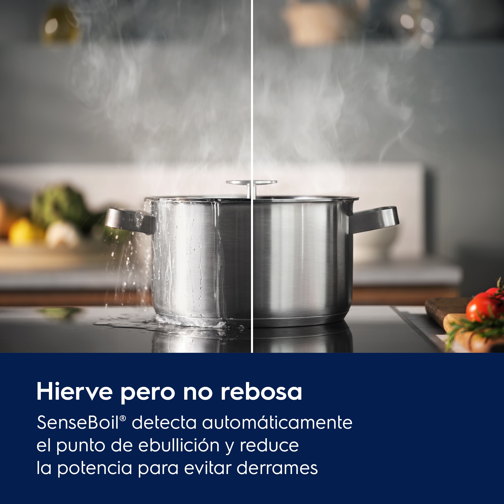 Placa de inducción Serie 700 SenseBoil de 3 zonas y 60 cm, Controles Slider (0-14 con 3 zonas PowerBoost) individuales con temporizador individual, Función Pausa, Bloqueo de seguridad, H2H, Biselada frontal