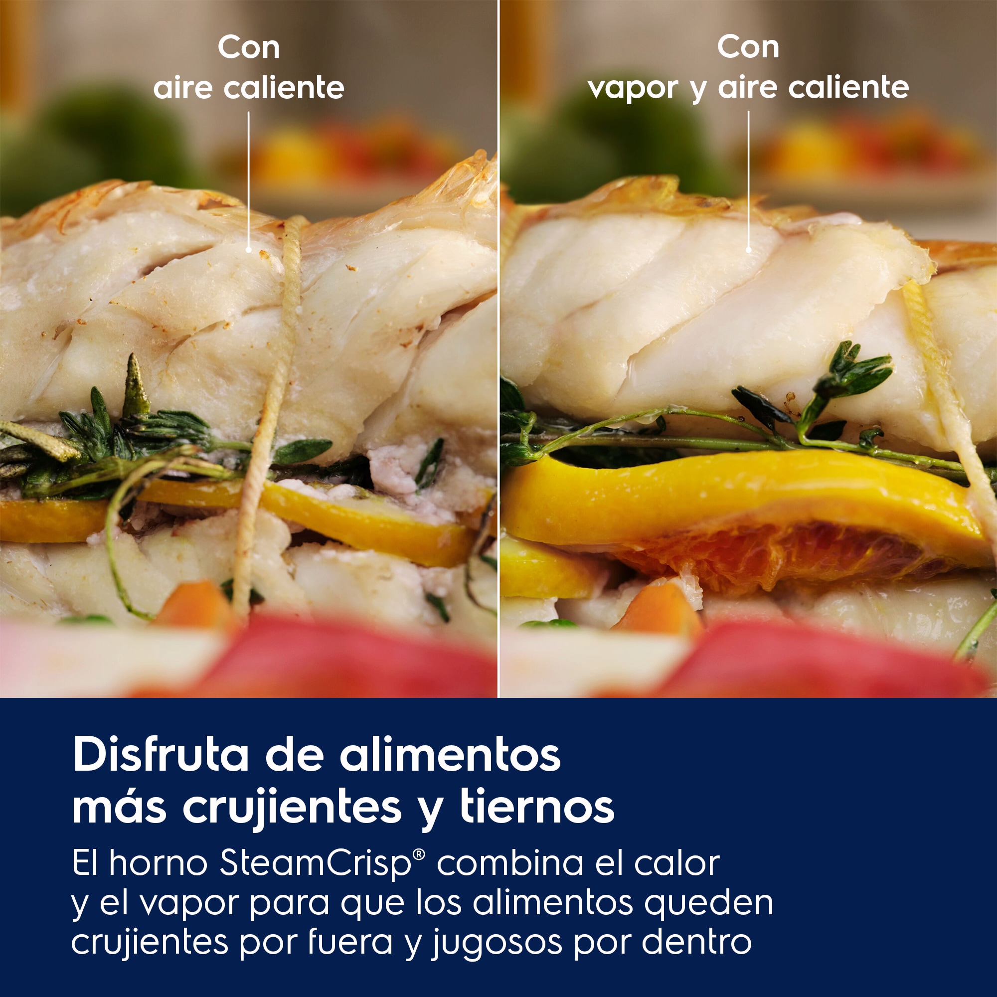 SteamCrisp® hace que la carne quede crujiente por fuera y más jugosa por dentro