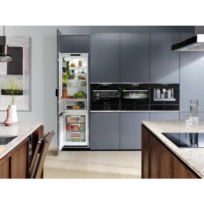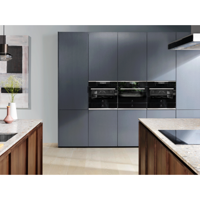 Envasadora al vacío integrable de 14 cm en acero inoxidable: 3 niveles de vacío, tres tipos de sellado y función marinado, control táctil, cámara de vacío hasta el 99,9%, cristal Negro + INOX Antihuellas