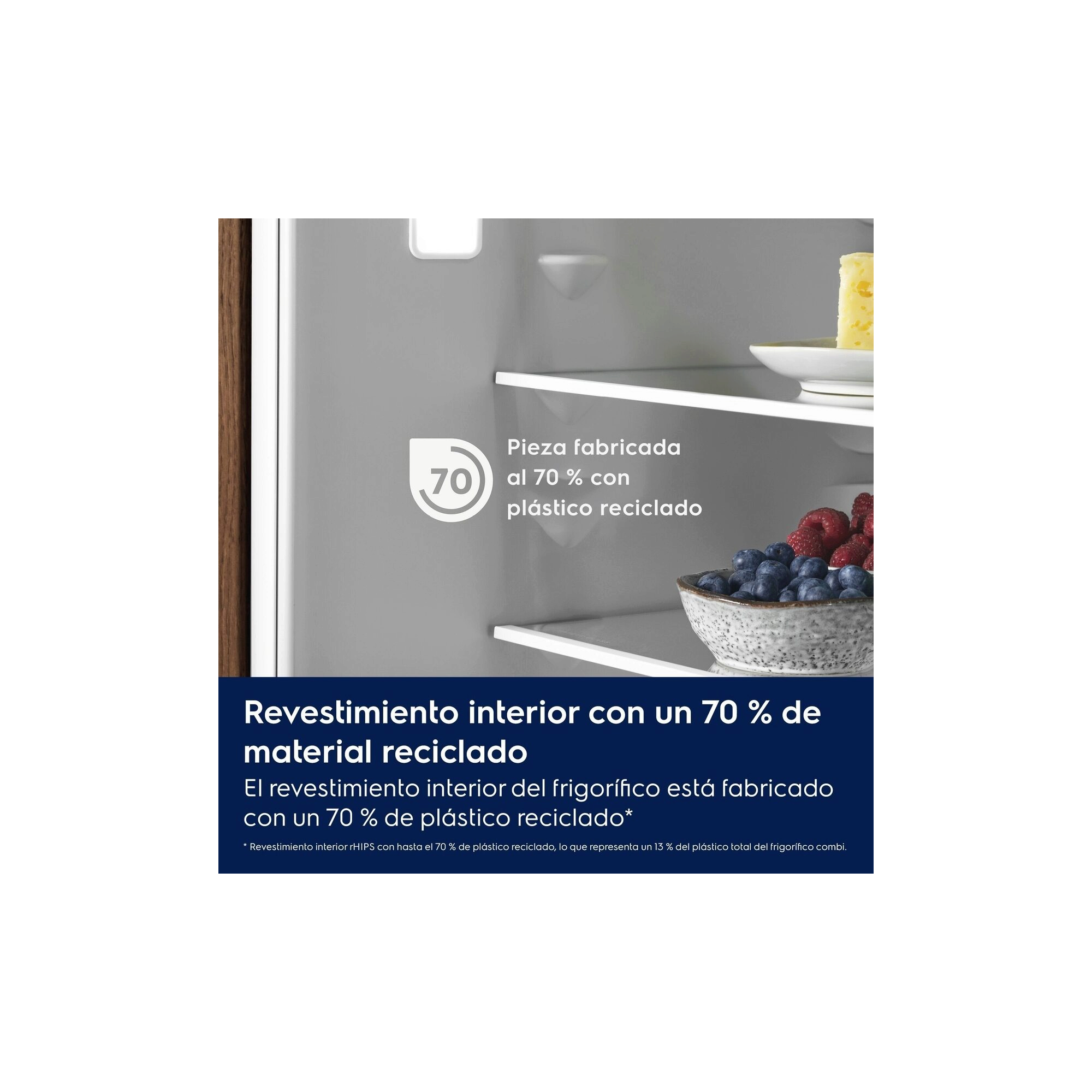 *Revestimiento interior hecho con hasta un 70 % de plástico reciclado (HIPS), lo que supone el 13 % del plástico total del frigorífico