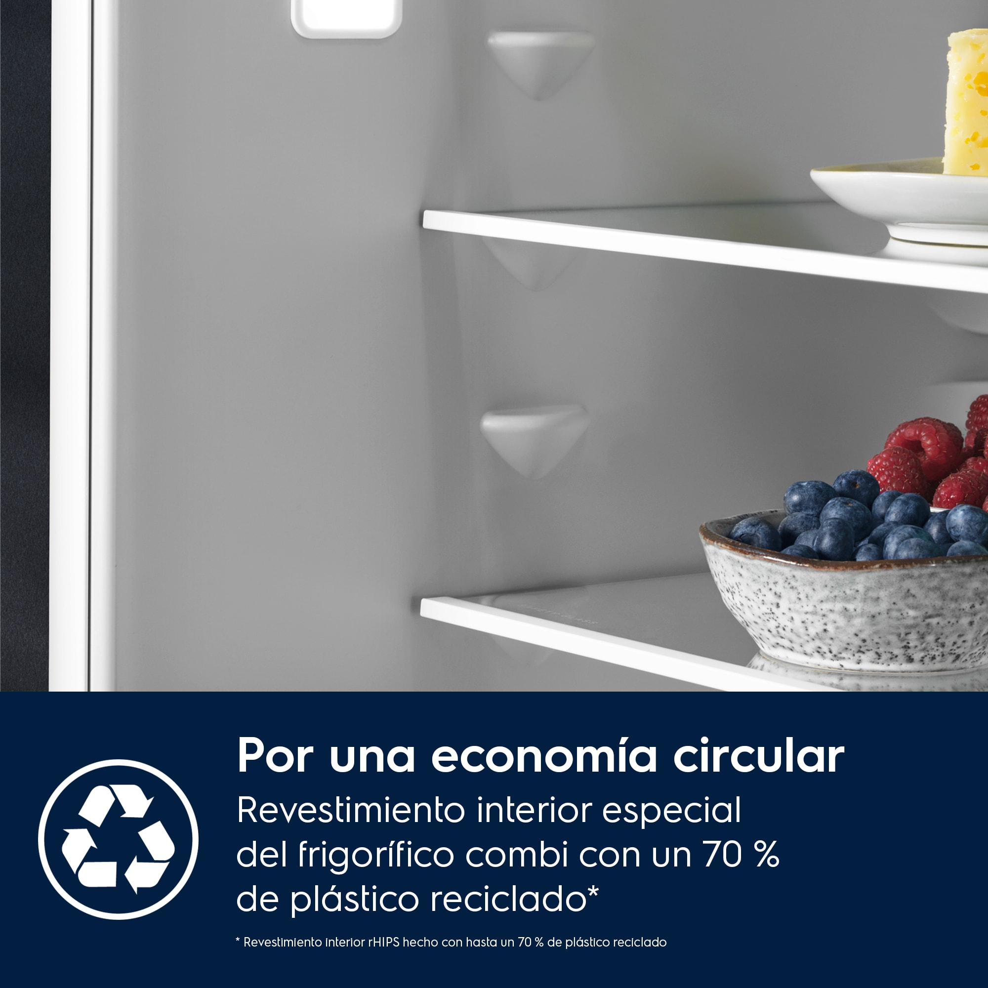 *Revestimiento interior hecho con hasta un 70 % de plástico reciclado (HIPS), lo que supone el 13 % del plástico total del frigorífico