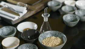 Incorpora todas las verduras al agua hirviendo y blanquea durante 30 segundos. Luego saca las verduras e introdúcelas en agua helada. Extiende entonces las verduras sobre un papel de cocina y deja escurrir.