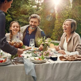 5 - Hornear con vapor combinado al 25% a unos 220ºC durante 15 o 17 minutos en la bandeja del centro del horno, o hasta que los suflés tengan un delicioso color dorado y crujiente por fuera.
