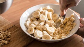 Incorprar el plátano chafado e integrar.